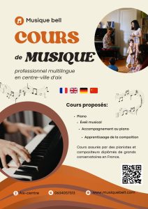 Cours de “musique Bell” assurés par des pianistes et compositeurs diplômés de grandes écoles en France, en Chine, en Allemagne et en Angleterre